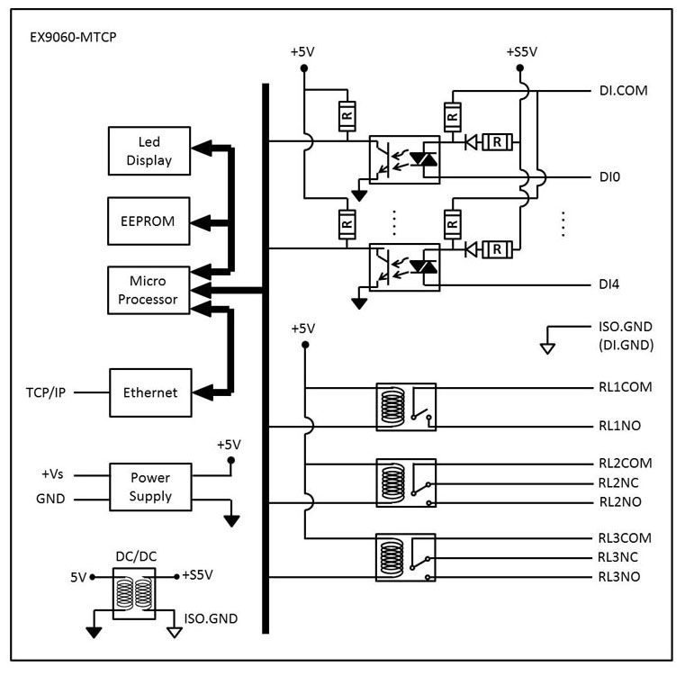 5DI(隔離)和3DO(繼電器),帶有ModbusTCP模塊