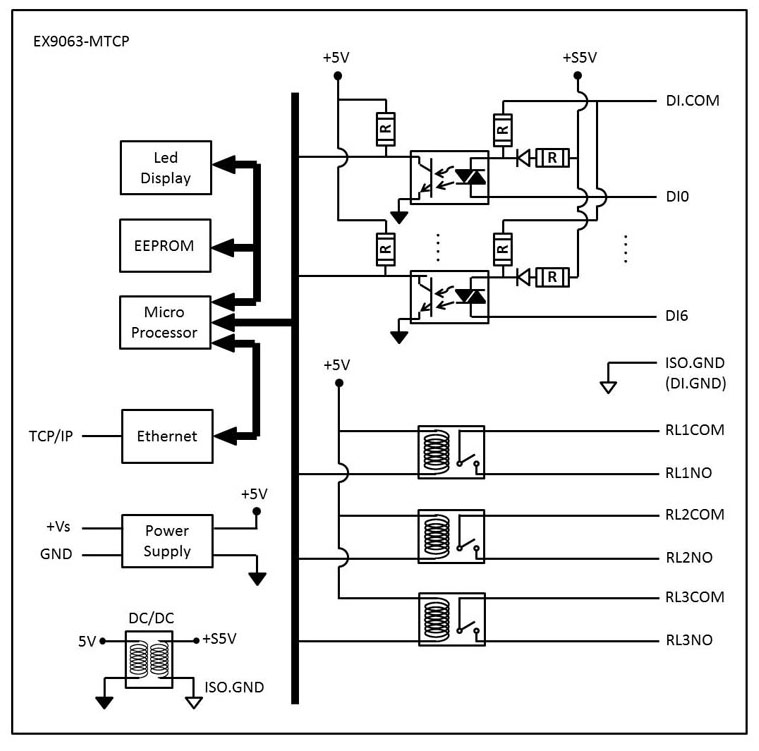 特殊功能: ■ 支持Modbus / TCP,TCP / IP,UDP,ICMP,ARP ■ 以太網10/100 Based-T通信 ■ 支持3個繼電器輸出通道(A型) ■ 提供脈衝/延遲輸出模式 ■ 支持7路隔離數字輸入通道 ■ 提供計數器/頻率輸入模式 ■ 支持幹/濕接點輸入 ■ 完全光隔離3750Vrms ■ 狀態LED指示燈 ■ EX9000-MTCP系列實用程序/軟件/命令/ Web服務器支持: EX9000-MTCP實用程序 TCPDAQ(以太網I / O)ActiveX控制 TCPDAQ(以太網I / O)DLL API TCPDAQ(以太網I / O)數據結構 產品規格: |
